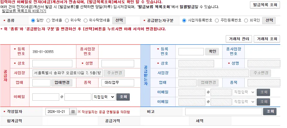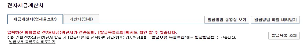 [세금계산서] 항목을 선택한 후 진행합니다.