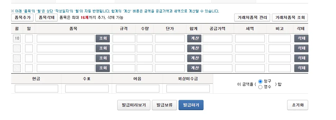 [발급하기] 버튼을 클릭하여 발행을 완료합니다.