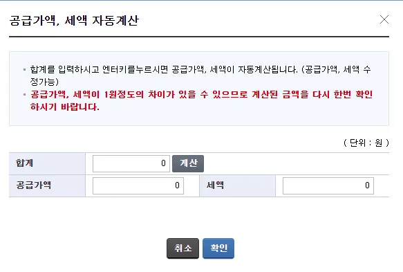 [계산] 버튼을 클릭한 후, 합계액에 포인트 + 부가가치세 10% 포함 금액을 입력합니다.