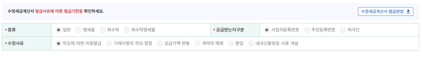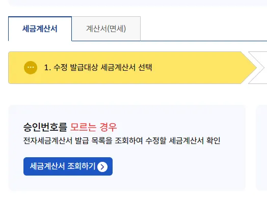 국세청 홈택스에서 수정 세금계산서 발행 방법