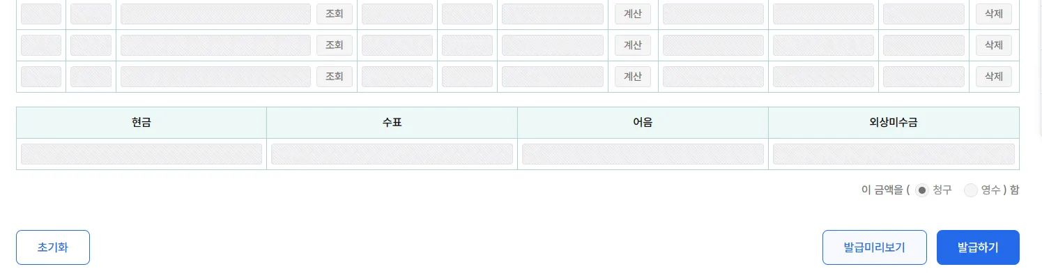 면세의 경우 [계산서] 탭을 선택한 후 진행합니다.