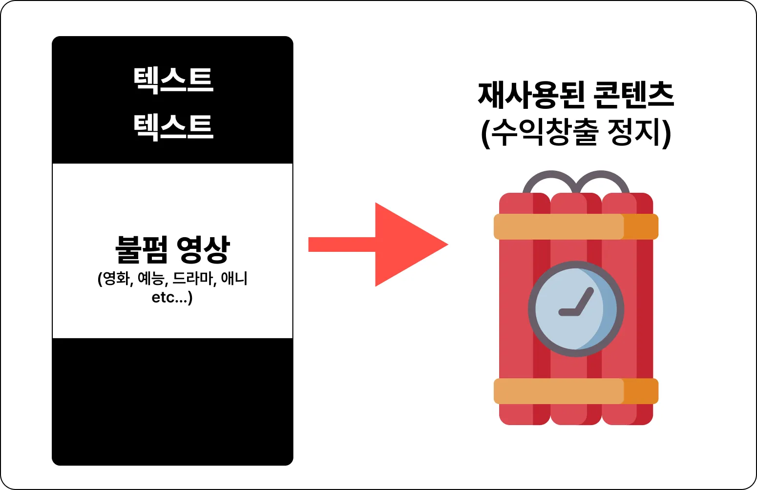 디즈니, 지브리 등 유명한 컨텐츠일수록 YouTube 자동화 시스템을 통해 잡힐 확률이 높아지며, YouTube가 아닌 틱톡, 릴스 등에서 영상을 퍼오거나, 해외에서 타인의 영상을 퍼오면 시기가 늦어질 뿐 언젠가는 수익 창출 정지 처분을 받게 됩니다.