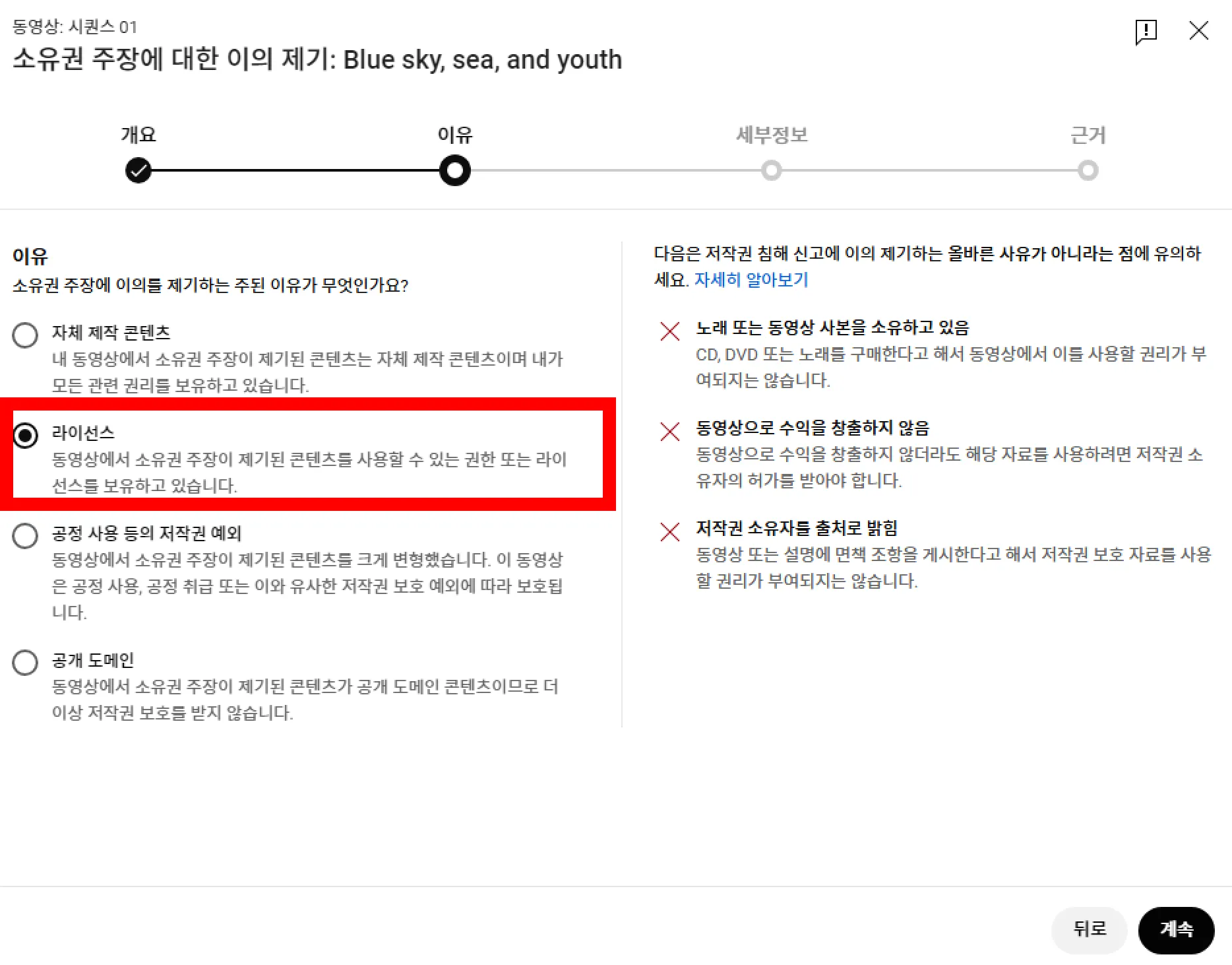 영상 업로드 시, 음원 인식으로 인해 일시적으로 저작권 제한사항이 표시될 수 있으나,