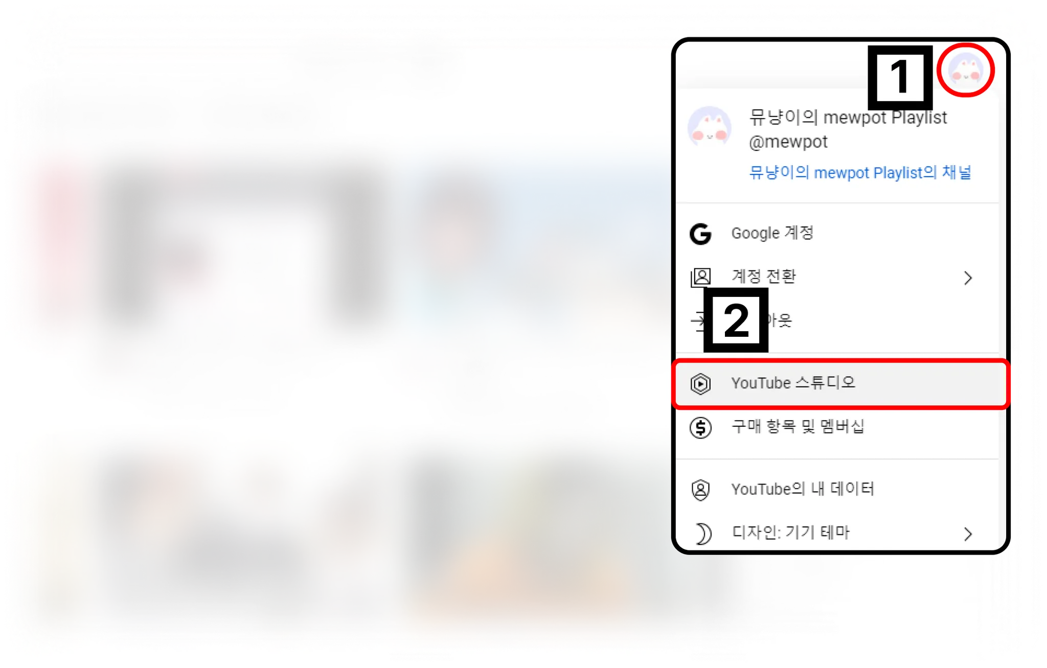 먼저, 유튜브 우측 상단의 채널 썸네일 아이콘을 클릭한 후,