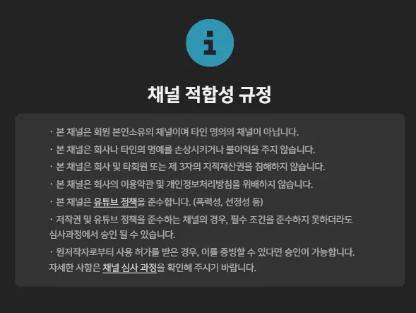 위의 기준을 충족한 채널은 차례대로 빠짐없이 승인 도와드리고 있으니 조금만 기다려주시면 감사하겠습니다.