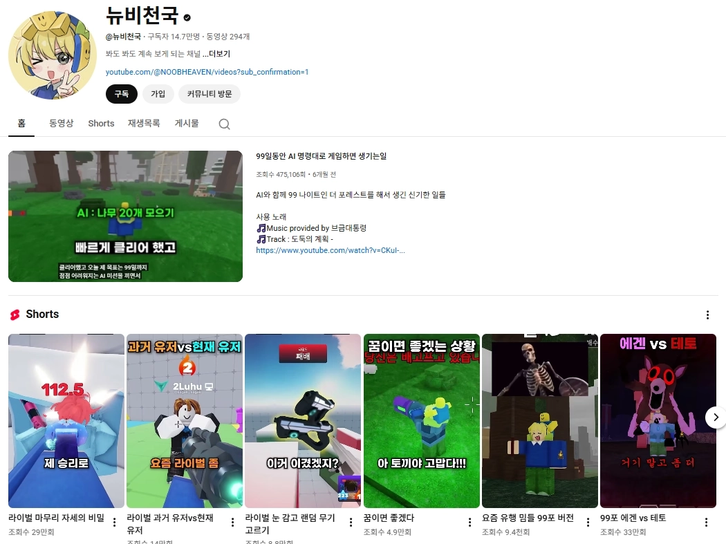 안녕하세요 로블록스 유튜브 하고 있는 뉴비천국이라고 합니다