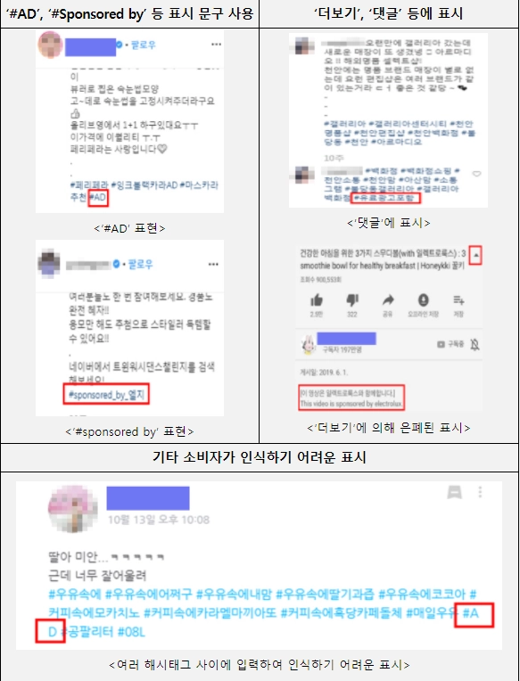 앞으로는 Thanks to, 콜라보, AD, Sponsored by 등의 우회적인 표현은 사용하면 안되고,