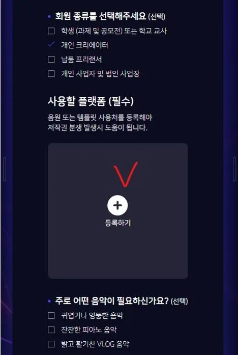 뮤팟 음원 사용을 보호받기 위해서 일반 회원들은 플랫폼 등록을 결제 전에 받고 있습니다.