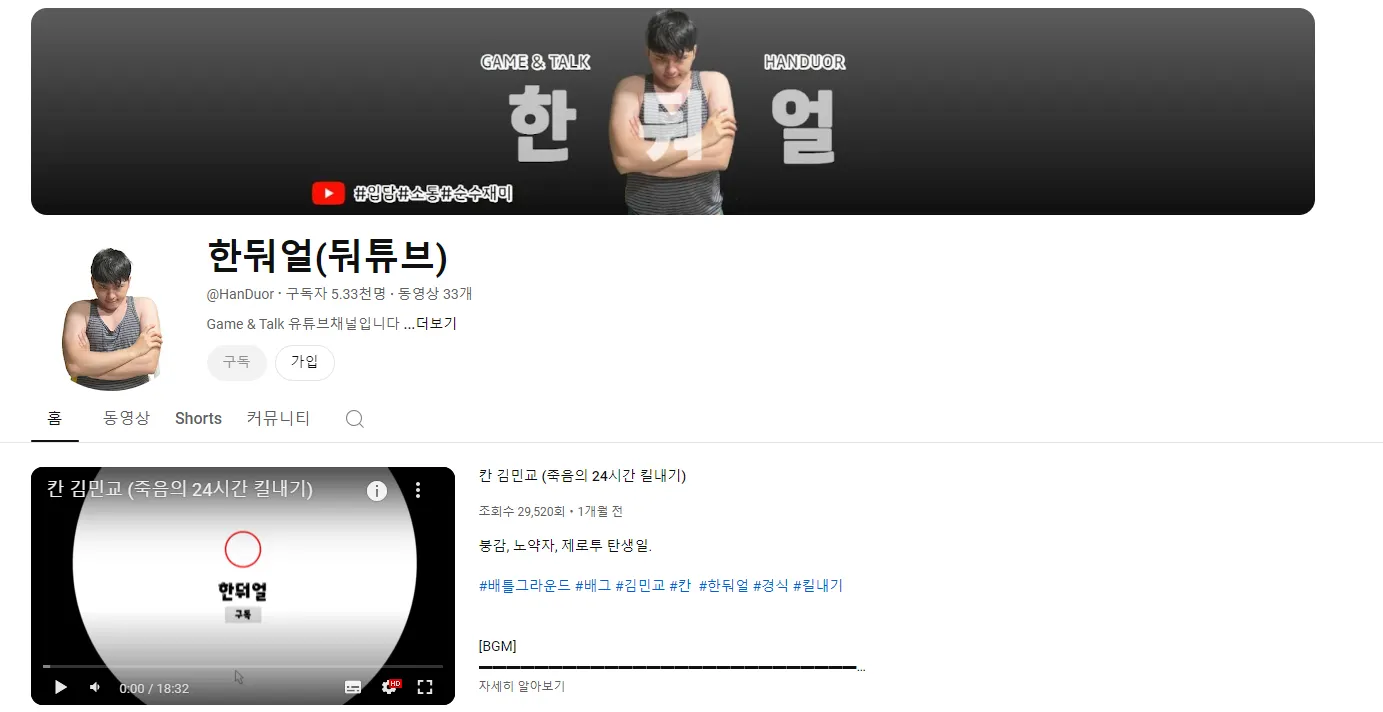안녕하세요 한둬얼님, 간단한 채널 소개 부탁드립니다.
