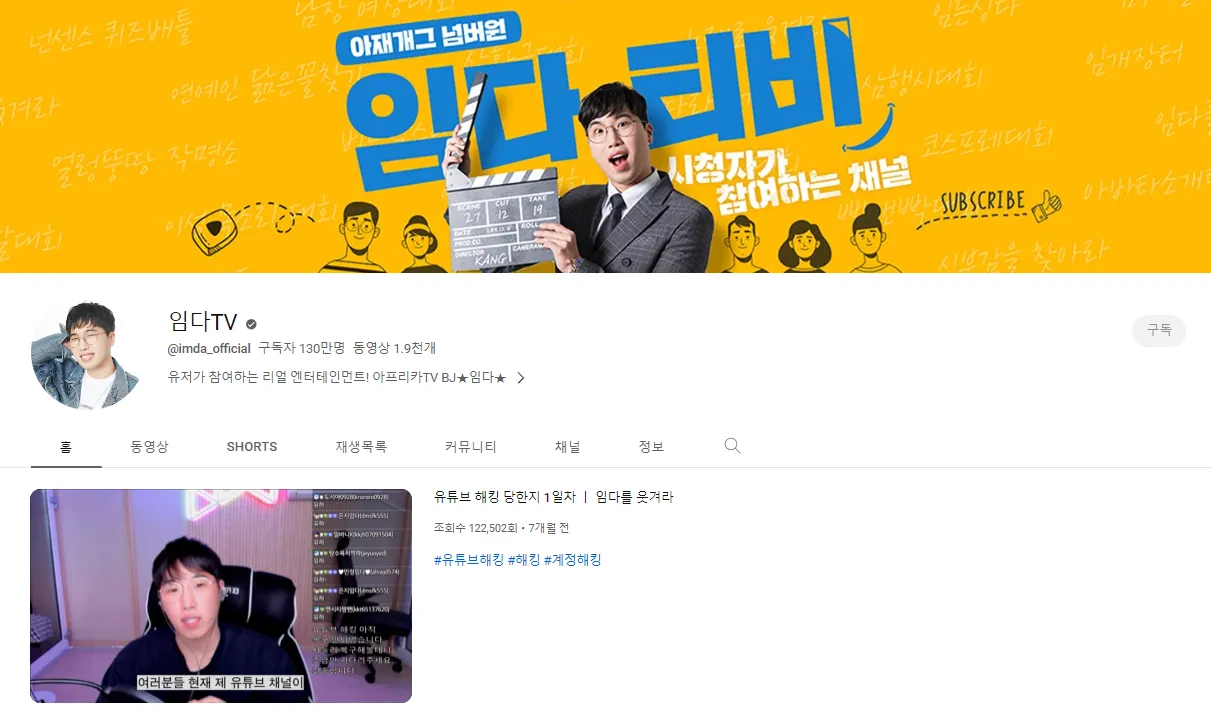 안녕하세요. 저는 현재 시청자들이 참여하는 콘텐츠로 주로 성대모사 대회나 무반주 노래 대회 등에 많은 사람들이 참여하고 체험할 수 있는 콘텐츠를 진행하고 있는 임다 tv라고 합니다.