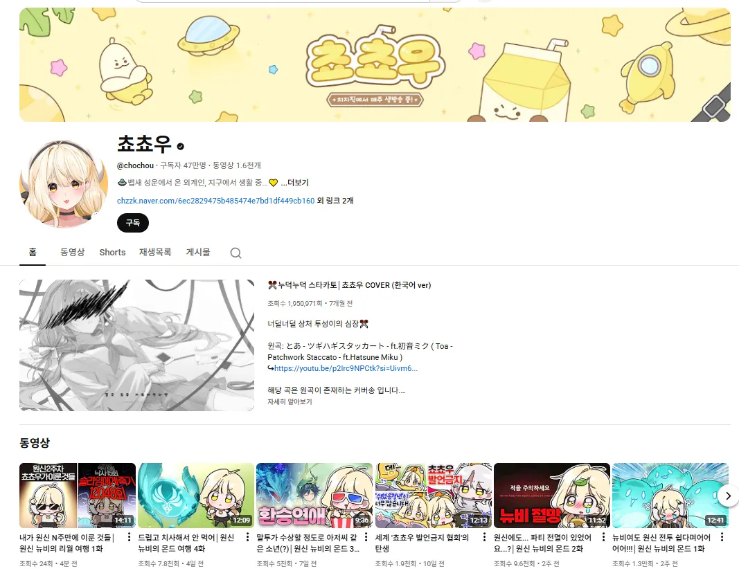 안녕하세요! 저는 버추얼 스트리머 쵸쵸우 님 편집자입니다!