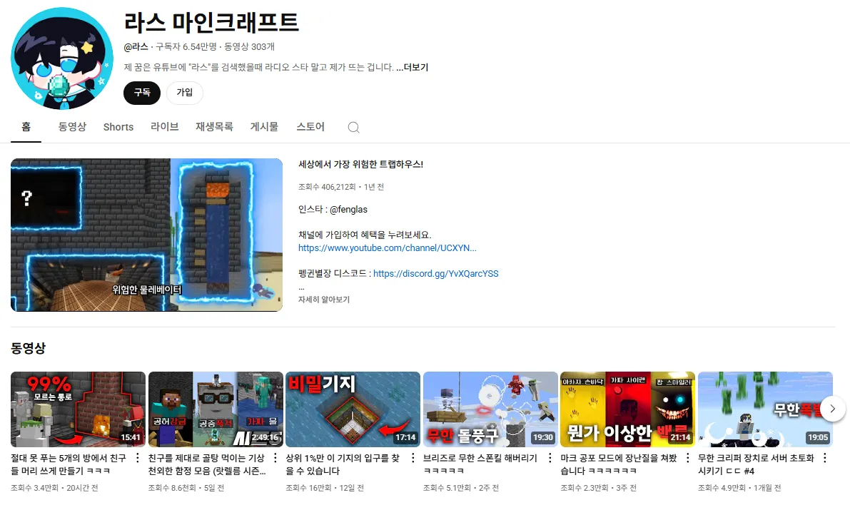 안녕하세요 마인크래프트영상을 제작하고있는 라스마인크래프트의 라스입니다!