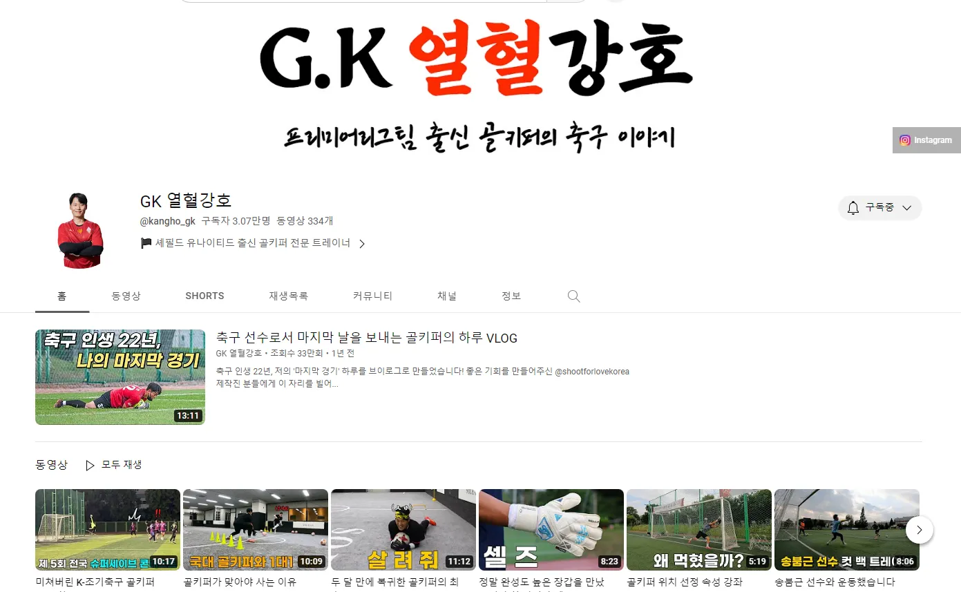 안녕하세요, 골키퍼 전문 유튜브 하고 있는 GK열혈강호입니다.