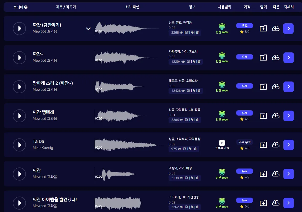 검색 기능이나 태그가 직관적이고 편리해서 원했던 사운드를 상황에 맞게 찾아 쓰기 편했습니다.