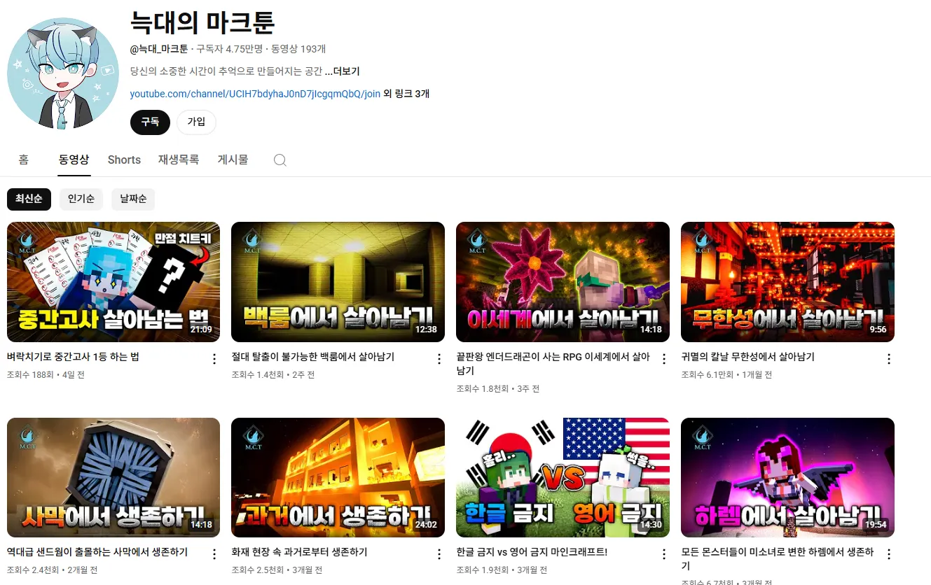 안녕하세요! 마인크래프트로 재밌는 예능 컨텐츠를 제작중인 늑대의 마크툰입니다!