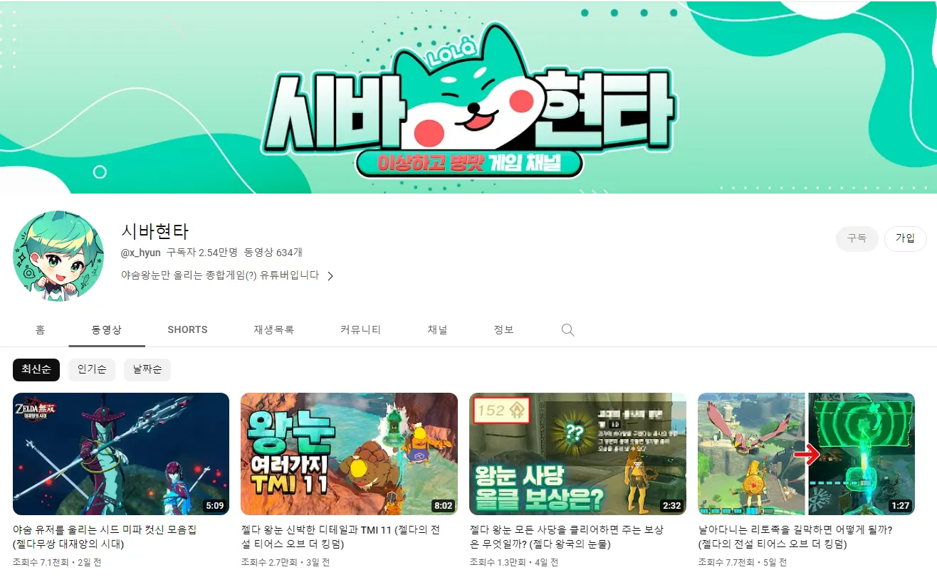 안녕하세요 저는 유튜브에서 종합 게임 유튜브로, 주로 젤다 시리즈를 업로드 하고 있는 시바현타입니다.