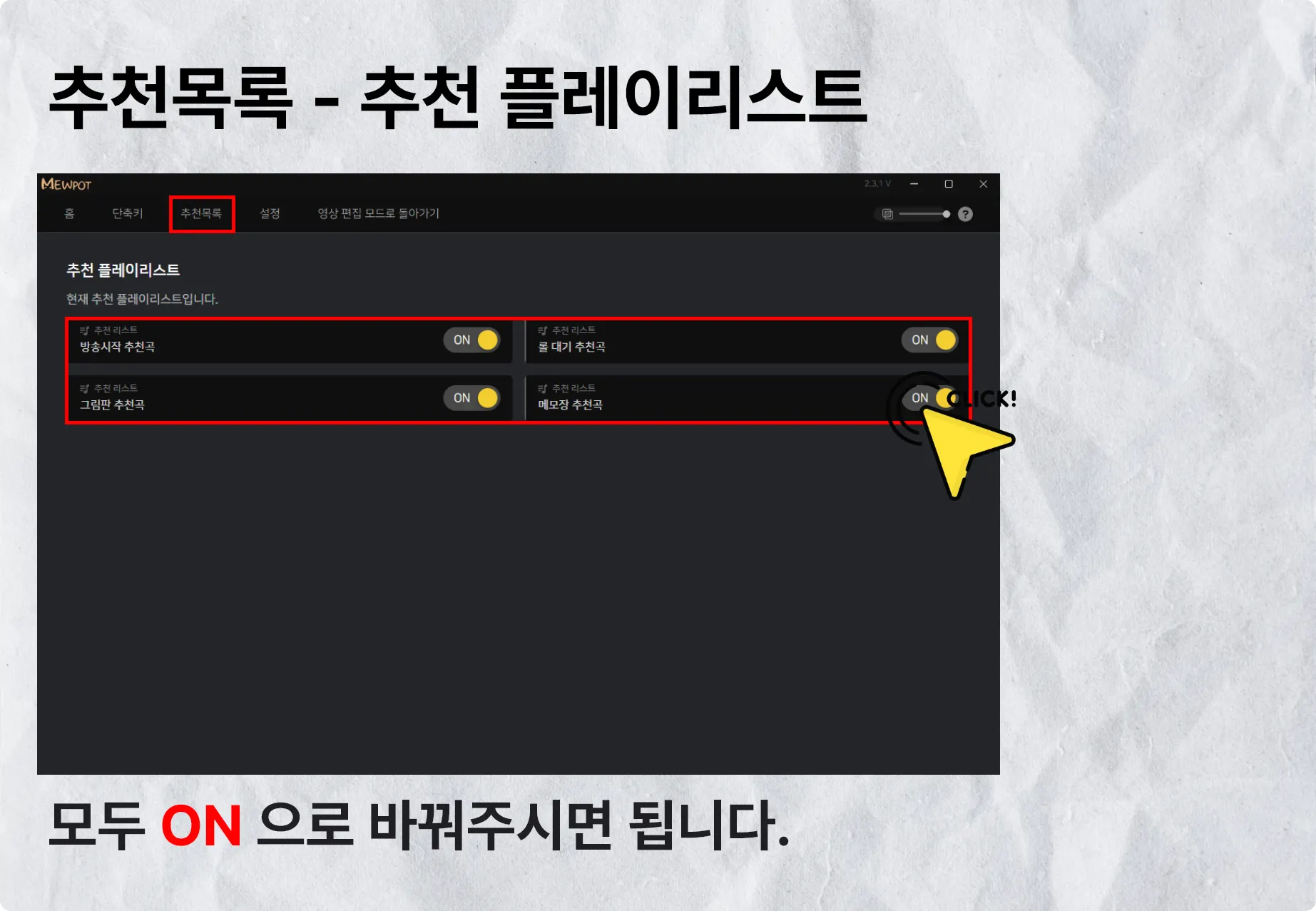 3. 꼭 추천목록 ON해주셔야 합니다!