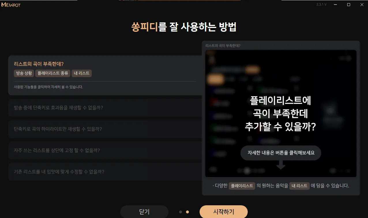 쏭피디의 트위치 생방송 화면을 인식하고 음악을 자동 재생하는 실시간 방송모드의 안정성 개선을 위해, 트위치 스트리머분께 테스트를 요청드리고 있습니다.