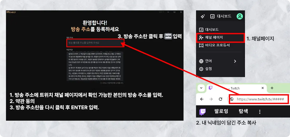 “방송 주소”란에 본인의 방송 주소를 입력합니다.